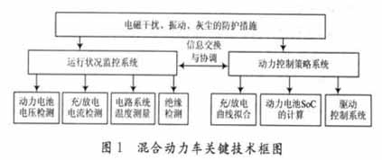 实现混合动力车共有三个关键因素:能够对汽车运行状态详细监控的系统;分析监控系统所获取的信息,并发出相应的控制命令;相比一般电子系统,混合动力车电子控制系统工作在车内非常恶劣的环境,电磁干扰、振动、灰尘等都会造成技术上的瓶颈,如图1所示。