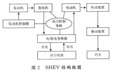 混合动力电动汽车由发动机和蓄电池共同提供动力,发动机和电动机可进行不同组合得到不同的驱动方案,如:串联、并联及混联。整车性能的好坏不仅与发动机和电动机等部件有关,还与其控制策略和优化方法有关。按照能源组合的方式,混合动力电动汽车可按动力驱动方式分为串联式混合动力电动汽车(SHEV)和并联式混合动力电动汽车(PHEV)。