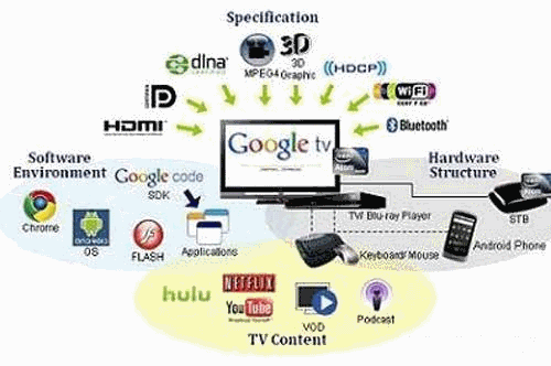 GoogleTV是一个整合计算机系统、媒体播放与网络应用的概念型电视平台,由Google公司主导研发,并且免费开源发布。GoogleTV的应用涵盖下列领域: