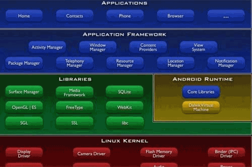 Android是一个模块化与层次性的架构设计,这也是平台化软件设计通用的设计理念与架构模式。Android主要有5个层次: