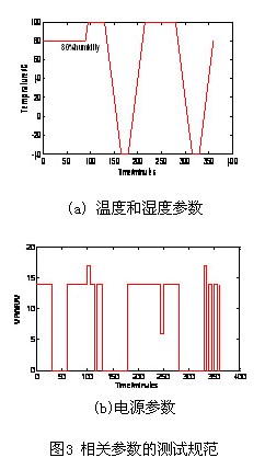 根据PCM各种工况下的极限环境,确定了温度、湿度、电源电压等重要参数,建立了一套周期为6小时的测试规范,具体如图3所示,并通过了利用DSPACE快速开发平台和NI虚拟仪器平台建立的耐久性测试实验平台的检验。