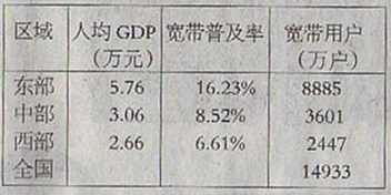 基于互联网宽带普及率与人均GDP的关系分析,对我国东中西部互联网宽带用户分布进行预测,到2011年年末,全国互联网宽带用户数可达1.49亿。