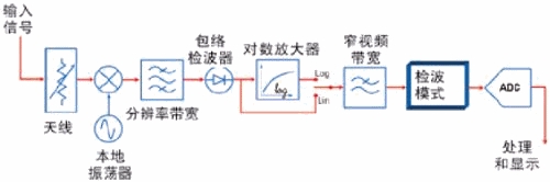 显示检波器图1中包括包络检波器和显示检波器(检波器模式)。包络检波器的特性是由频谱分析仪自身的设计决定的,用户无法更改这些特性,本文不再讨论。为了容纳更多的测量和应用软件,现代频谱分析仪提供多种显示检波类型。某些检波器可为不同类型的信号提供更优化的结果。例如,峰值检波器能够从一组采样数据点中检测出最大电平,从而为连续波(CW)测量提供最佳选择。稍后,这个最大电平会作为迹线点在频谱分析仪上显示。平均值检波器则与峰值检波器不同,它能够检测出采样数据点的平均电平,并将其作为迹线点显示。