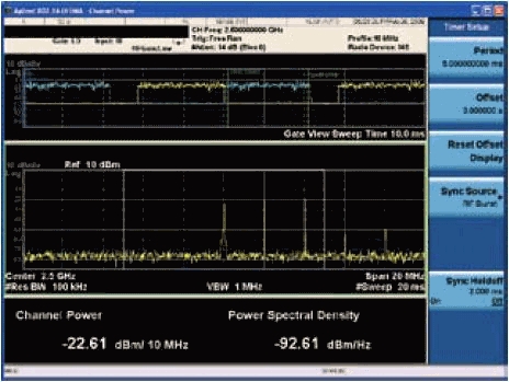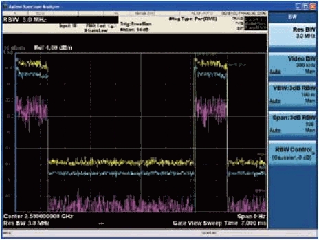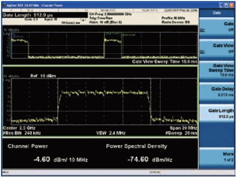 图4图中的信道功率测量使用WiMAX下行链路猝发脉冲进行选通。