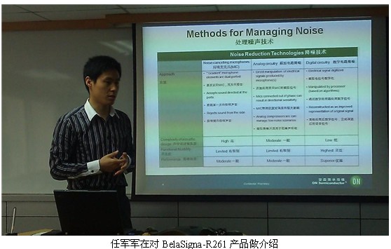 生活在都市的人们通常会在嘈杂的环境中拨打或接听电话,人们总是希望能够像在田野中一般获得清晰并且没有失真的声音。对于手机厂商来讲,采用能够清晰拾取 语音并抑制噪声的解决方案是关键。为了应对上述挑战,安森美半导体推出了高性能语音捕获SoC方案BelaSigna-R261。安森美半导体音频与助听 器中国市场开发经理任军军在日前的产品发布会上对BelaSigna-R261的特性做了介绍,并现场对产品进行了演示。
