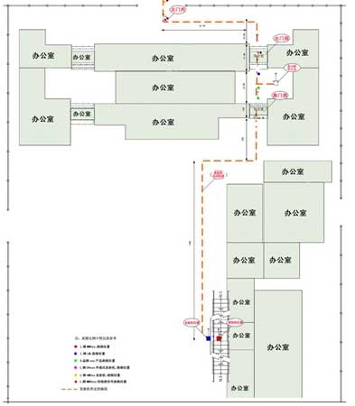 所走的线路如图1所示,起点为放置接收机的位置,终点是北门洞。被测产品是:(1)L牌UM2xx(射频功率250mW,200系列模拟射频平台),使用CountrymanBx话筒头,接收机是L牌的R4xx型,使用200系列兼容接收模式及线路输出(4dBu)端口。(2)L牌MM4xx(射频功率100mW,400系列数字耦合平台),使用CountrymanBx话筒头,接收机是L牌UCR4xx型,使用400系列数字耦合接收模式及线路输出(4dBu)端口。