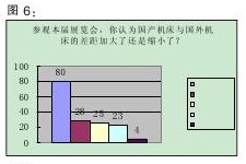 在本届展会上,“数控机床与基础制造装备重大专项(04专项)图片展”吸引了众多观众的目光。国家设置“04专项”,是为了逐步提高我国高档数控机床与基础制造装备的自主开发能力,满足国内主要行业对制造装的基本需求。在对“高档数控机床与基础制造装备”重大专项的评价调查中,认为“有很大作用”的达69.4%,“作用一般”的为26.9%,“没起什么作用”的为3.8%(详见图3)。这表明,国家对数控机床行业的政策支持,得到了大多数行业人士的认可。