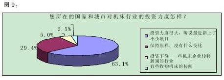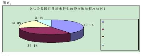 调查数据显示,40.0%的受访者认为我国目前机床行业的投资“大体上饱和,但还有投资空间”,33.1%认为“不饱和,还需要加大投资力度”。(详见图8)该结果表明,三分之一的被访者认为机床行业还有投资的空间,加上那些认为投资空间很大的比例,有超过一半的人认为机床行业还应该增加投资,业界对机床行业的预期由此可见一斑。