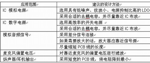 编解码器或DAC都是在同一芯片中同时包含有模拟和数字电路。这样,就有多个电源引脚用于提供模拟和数字电源,一般标记为AVDD和DVDD。这些电源管脚分开来的原因是由于数字电路的高速开关电流会产生非常大的噪声,而模拟电路对电源噪声又非常敏感。音频系统设计和版图的要点是,必须为模拟电源引脚提供纹波和瞬变都很小的‘干净’电源。在模拟电源引脚上呈现的任何噪声都会以不同的方式损害音频输入或输出信号的质量。
