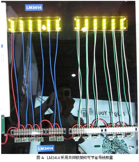 LM3414一款内置电流检测电路的DC/DC LED 驱动器,无需外置检测电阻,有助于节省系统成本及缩小方案体积。LM3414采用共阳极配置的浮动降压拓扑结构,因此可以节省导线成本。用传统方法,LED驱动IC与LED之间需要2N条导线,LM3414则只需要N+1条导线,节省近一半的导线,如果是远距离连接,节省可观的导线成本。