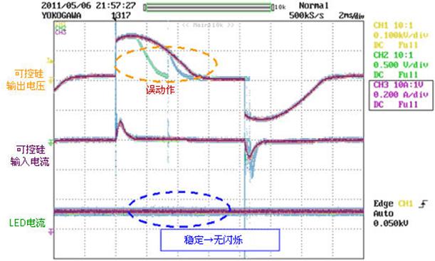 [图7] 可控硅调光器误动作时BD555AKFV的LED电流波形