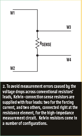 图2:开尔文连接是一种带有两条激励引线和两条传感引线的4线连接。