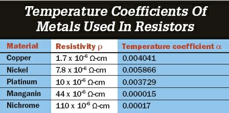 表1:电阻中所使用的金属决定电阻的温度系数。