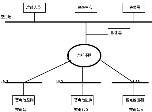 蓄电池在线监测还可以利用通讯手段进行网络化管理(如图4),将几个站或一地区的蓄电池监测通过光纤进行组网,建立一个实时远程智能化蓄电池监测网络化管理系统,以实现信息集中和远程控制,使运行检修人员、相关人员和管理决策层能够通过局域网内的任何一个终端用IE浏览的方式即可实时掌握各变电站蓄电池的运行情况及其性能变化趋势,使蓄电池得到及时的维护,同时也为“设备状态检修”提供可靠依据,将“定期维护检修”转变为“状态检修”,从而实现对蓄电池的科学化管理,保证系统的可靠、安全运行。