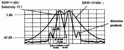 图4 频率选择性和 RES BW 对频率分辨率的影响