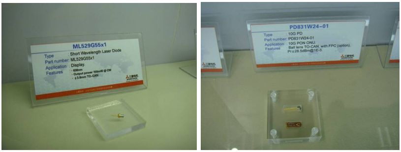 同期,三菱电机还展示了新推出的应用于G-PON ONU的 DFB-LD, 该款DFB-LD 有着宽tolerance curve 和较小的 beam angle和较小的tracking error等优点。在10G xG-PON 方面,公司也新推出了应用于ONU的1.27μm DFB-LD。为无源光网络的发展提供了必要的支持。[page]