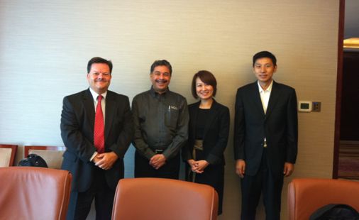 照片说明:(从左到右)Mark Burr-Lonnon( Mouser欧亚区副总裁), Conrad Fernandes(LeCroy公司亚太区副总裁),Daphne( Mouser 亚太区市场与业务拓展总监),管立虹(LeCroy公司亚太区目录销售经理)