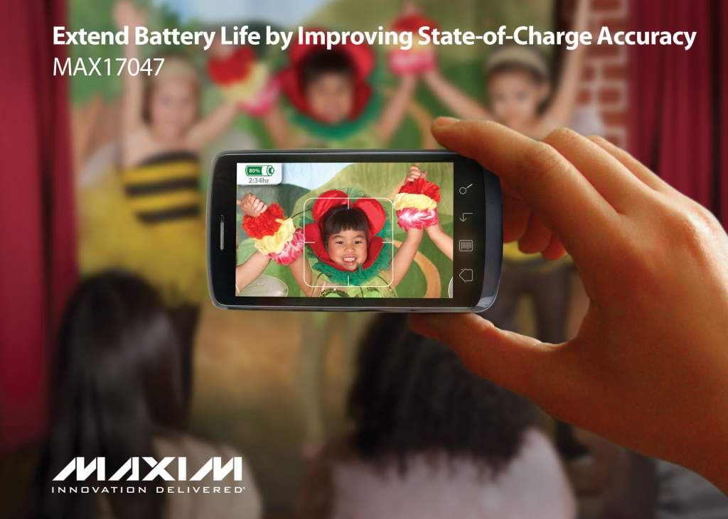 Maxim Integrated Products, Inc 推出用于单节Li+电池组的电量计MAX17047。MAX17047采用公司最新的ModelGauge™ m3算法,是业内唯一一款避免了传统库仑计算法中突变修正的库仑电量计。与其它库仑计相比,该ModelGauge m3 IC使用的检流电阻更小、外部元件更少,有效节省了空间和成本。该款IC可理想用于单节和多节Li+电池的电量计算,适用于各种便携式应用(包括:无线手机、智能电话、平板电脑、电子书、便携式游戏机、数码相机、金融终端、便携式导航设备以及便携式医疗器械)。