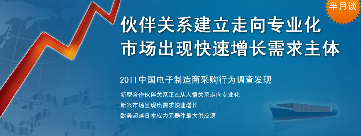 缺货?;?,中国电子系统制造商和电子元器件供应商对风险共担、利益共享的伙伴关系有了新的理解。 2011中国电子制造商采购行为调查发现,在供应商认证与引入过程中建立了系统流程并很好实施的比例显著增加;让供应商参与早期产品设计的比例显著增加;培养供应商的比例显著增加。合作伙伴关系建立正在从人情关系走向更加专业化和系统化。此外,新兴市场在新型伙伴关系基础上呈现出需求快速增长。