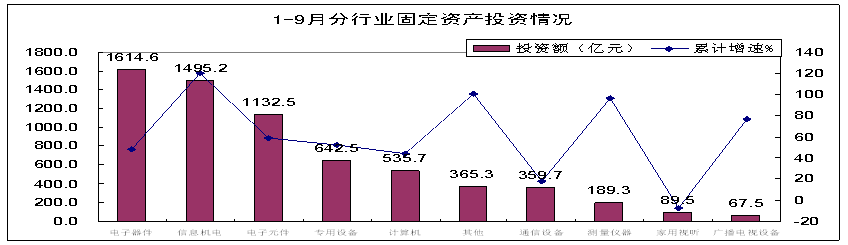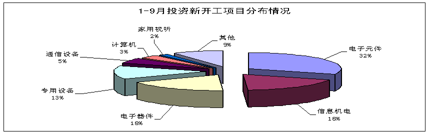 据悉,前三季度,在各地大力发展战略性新兴产业的带动下,电子信息产业固定资产投资保持高速增长,新开工项目明显增多,基础元器件领域投资领先增长,行业结构不断调整。主要特点如下: