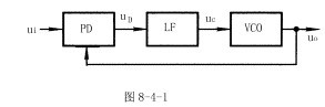 锁相环通常由鉴相器(PD)、环路滤波器(LF)和压控振荡器(VCO)三部分组成,锁相环组成的原理框图如图8-4-1所示。锁相环中的鉴相器又称为相位比较器,它的作用是检测输入信号和输出信号的相位差,并将检测出的相位差信号转换成uD(t)电压信号输出,该信号经低通滤波器滤波后形成压控振荡器的控制电压uC(t),对振荡器输出信号的频率实施控制。