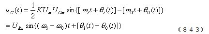 用低通滤波器LF将上式中的和频分量滤掉,剩下的差频分量作为压控振荡器的输入控制电压uC(t)。即uC(t)为: