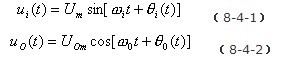 因压控振荡器的压控特性如图8-4-3所示,该特性说明压控振荡器的振荡频率ωu以ω0为中心,随输入信号电压uc(t)的变化而变化。该特性的表达式