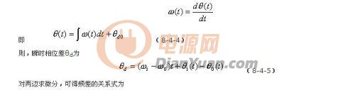 式中的ωi为输入信号的瞬时振荡角频率,θi(t)和θO(t)分别为输入信号和输出信号的瞬时位相,根据相量的关系可得瞬时频率和瞬时位相的关系为: