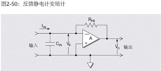 输入电容对采用负反馈的电流表的影响与其对分流型安培计的影响不同。这种模式的电路示于图2-50。