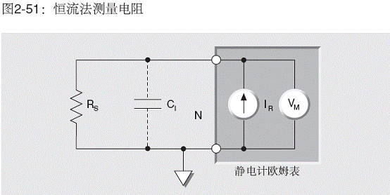 输入电容也会以同样的方式影响电阻测量(图2-51)。这时,CIN也必须由电流(IR)充电,因此也适用同样的公式。