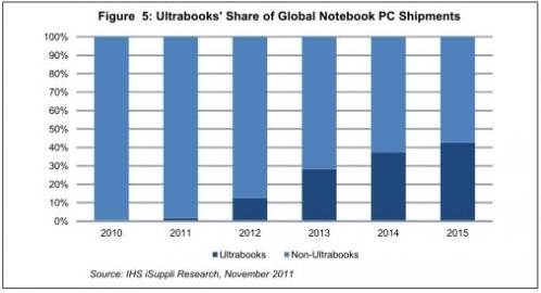近日消息,据外媒报道,根据IHS iSuppli公司计算平台部门的研究报告显示,为了抵挡媒体平板日益增强的威胁,移动PC市场正在力推新型超级本平台,预计其出货量到2015年将占到整体笔记本市场的40%以上。