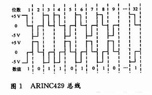 ARINCA29总线是一种单向广播式数据总线,采用双角屏蔽线传输信息,可由两根独立总线实现双向传输,数据传输率为:高速传输的位速率为100 Kb/s±1%,低速传输的位速率为(12.0~14.5)Kb/s±1%。ARINC429规定数据传输采用双极性归零制的三态码方式,如图1所示,即调制信号由“高”、“零”和“低”状态组成的三电平状态。双极性归零码的基本信号波形中携带了位同步信息,位同步是由零状态变至“高”或“低”状态的这一状态变化来识别。字同步是以传输周期间至少有四个位时的时间间隔为基准,紧跟该字间隔后要发送的第一位起点即为新字的起点。