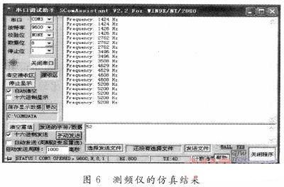 从图6可以看出,PIC18F452已经测出了设定的几个输入频率的数值,仿真结果表明该方案可行。