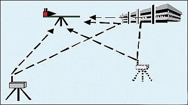HAAT系统可用来评估在分集组合和自适应波束形成试验中各种天线配置的性能(典型的应用如图1)。图2给出了一个采用HAAT系统的典型试验场景。接收器将来自两个或更多接收信道的信号下变频到基带。这些信号被记录在数字录音带上,以便利用适当的算法进行离线处理。接收器在2.8米长的轨道上以模仿人行走的恒定速度移动。一个小型手持式无线电装置支撑着两个天线,天线的间隔和方向是可变的。该系统具有如下特性:2.05GHz CW信号;两个发射器;一个接收器(两个信道,可扩展至4个);2.8米线性轨道可连续收集数据,并离线处理;高度便携式电池供电系统;手持接收器的真实工作环境。