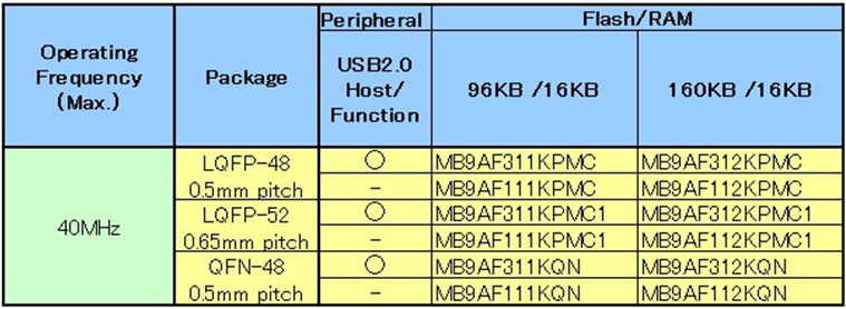 基本产品组:MB9A310K/110 系列 (12款产品)