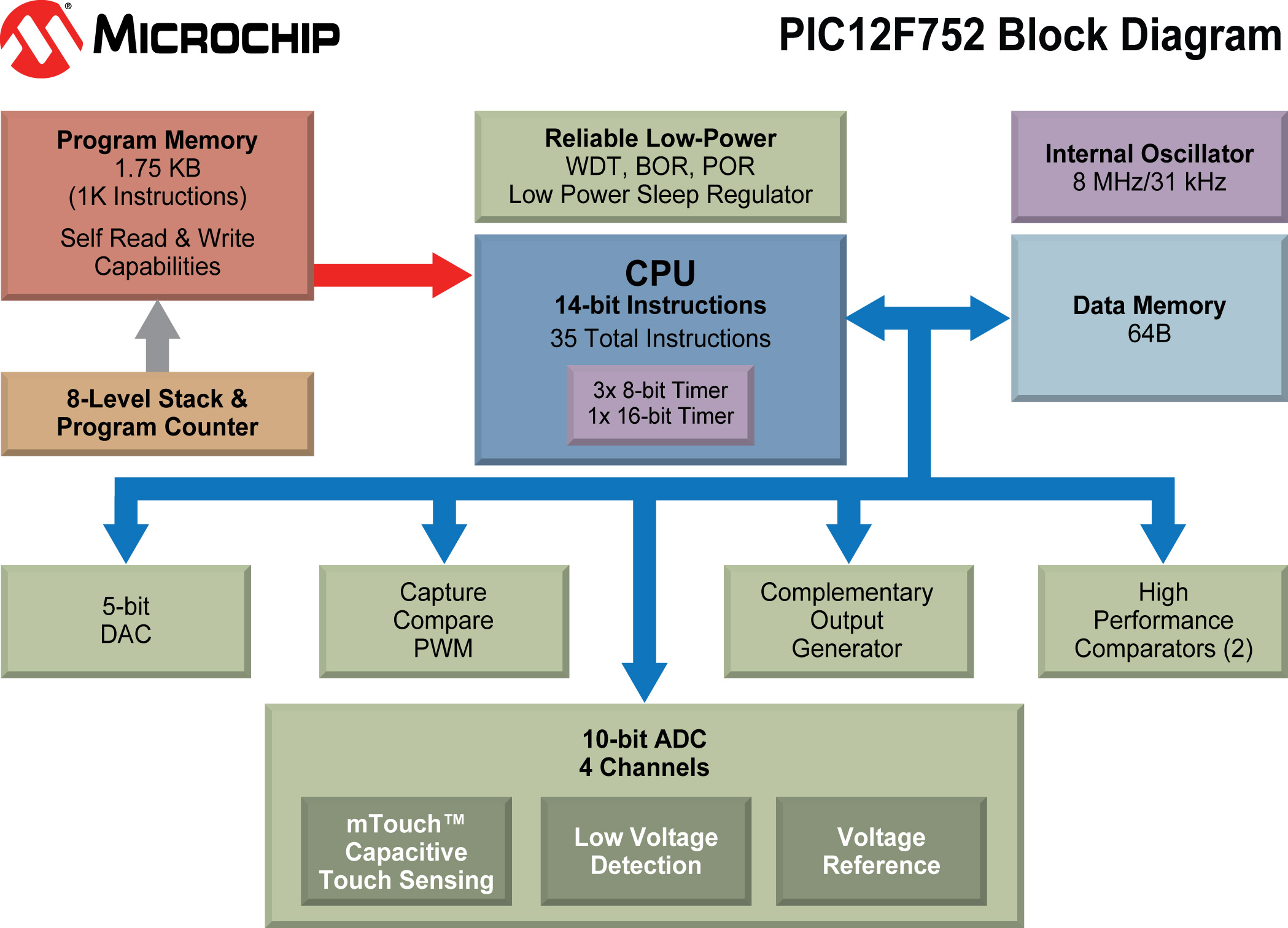 工程师们始终面临着在降低系统成本同时提高系统性能和效率的挑战,特别是新近的LED照明和电池充电应用。凭借集成的COG、高性能比较器、可直接驱动MOSFET的50 mA输出等丰富的片上通用和专用外设,PIC12F(HV)752 MCU能够满足这些需求。PIC12HV752 MCU是该系列中的高电压型器件,集成了并联稳压器,使器件可在2V至未指定用户定义最大电压下工作,其工作电流小于2 mA。这一高电压型器件是采用高电压电源轨的成本敏感型应用的理想选择。此外,4通道10位ADC可用来实现各种传感器和mTouch™ 触摸传感应用,包括电容式触摸。