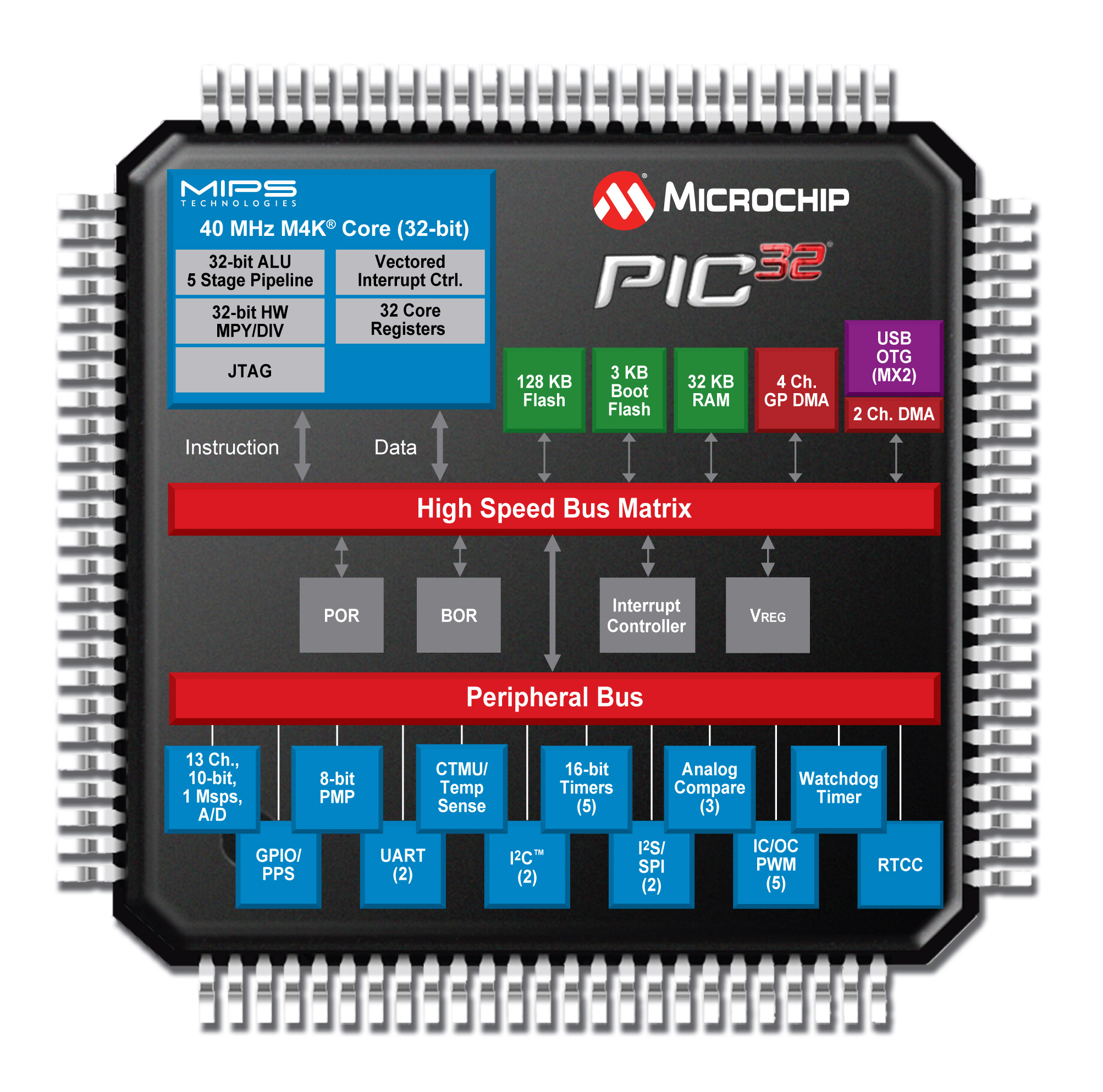 全球领先的整合单片机、模拟器件和闪存专利解决方案的供应商——Microchip Technology Inc.(美国微芯科技公司)在德国嵌入式世界大会上宣布,推出全新低引脚数32位PIC32单片机(MCU)系列,以小至5mm x 5mm的封装提供61 DMIPS性能,适合空间受限和成本敏感的设计。PIC32 “MX1” 和 “MX2” MCU是体积最小且成本最低的PIC32单片机,也是第一款具有专用音频和电容式传感外设的PIC32 MCU。最新器件还配备了USB On-the-Go(OTG)功能,使其成为开发消费类、工业、医疗和汽车市场音频配件及其他应用的理想选择。