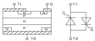 图1 双向可控硅结构及等效电路