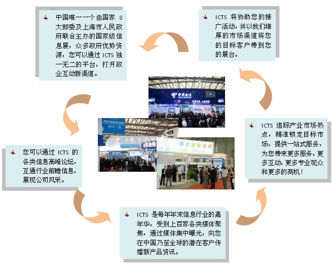 ICTS作为中国最具影响力的国际工业品牌展“中国国际工业博览会”下最重要的专业展之一,多年来依托中国战略性新兴产业的政策导向,立足市场需求,站在行业的前沿,聚焦业内热点,为信息企业提供集产品展示、信息交流、供需交易于一体的高端营销平台,同时,也是中国每年年底前的信息业内人士聚会的嘉年华。