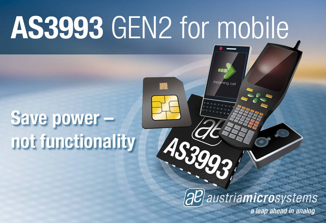 AS3993和AS3980都可以在非常低的电源供给下运行,3.3V电压仅消耗75mA(标准情况)。该特性使这两款先进的RFID读卡器芯片极适合应用于便携式以及依靠电池供电的设备,比如手机。