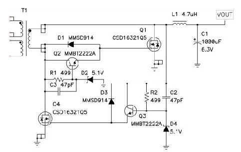 图 5 D2 和 D4 限制了该同步正向驱动器中正栅极电压