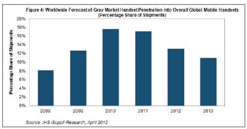 - 2010和2011年,手机灰市占总体手机出货量的17-18%