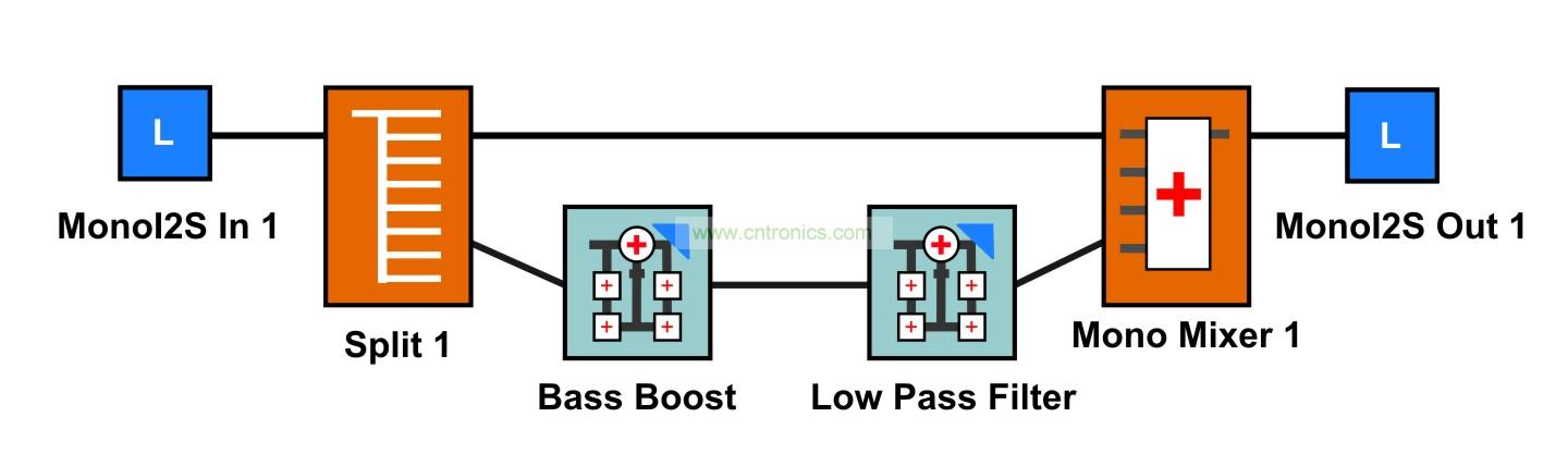 如果增频频率大体上较低,则请尝试在增益级后面增加一个低通滤波器,以降低限幅引起的高频。在模拟系统中,使用足够高的截频速率来构建这种低通滤波器通常要求有一个多阶滤波器,从而让系统变得体积庞大且成本高昂。但是,在数字处理系统中却可以轻松实现,条件是在音频处理器中有足够的有效MIPS。图2 显示了软限幅时一个处理流程的例子。