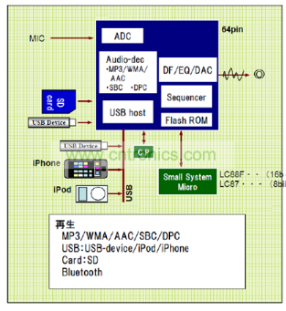 安森美半导体新开发的DSP无机芯方案包含各种音频格式编解码,可以支持多种外接设备如USB、iPad、iPhone、SD卡和蓝牙等。内部算法还包括了音效处理功能;另外,还预留了CD-DSP接口,将CD机芯作为可选配置,实现平台化设计,目前已有相应产品推出。图6是安森美半导体的无机芯DSP方案。