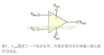 输入共模电压VICM是一位工程师在考虑运放输入时的首要规格之一,但它可能带来一些混淆。VICM描述了一个电压电平,它是反相和非反相输入端的平均电压(图1)。通常用下式表示: