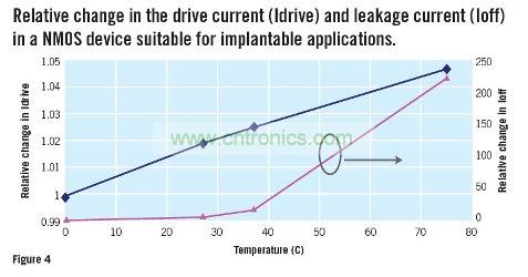 图4:NMOS设备中漏电流与驱动电流随温度变化