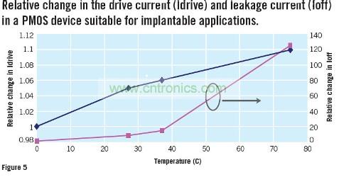 图5:PMOS设备中漏电流与驱动电流随温度变化
