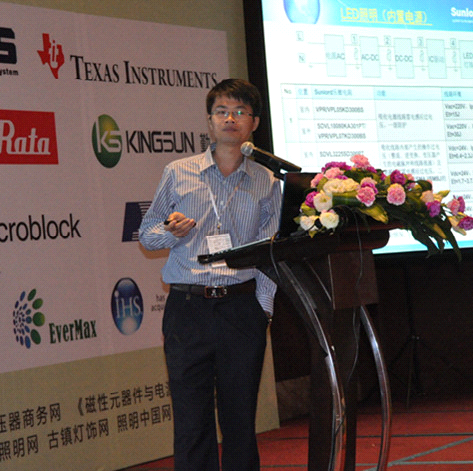 华润矽威现场系统应用工程师盛欢讲述了《高功率因素高性能LED恒流驱动方案》,从LED产业链组成,行业增长规模,应用领域,技术指标等方面,结合通用LED照明驱动应用方案及实例,阐述了LED产业改革创新,标准化,规范化,一体化的市场趋势,提出了LED整体解决方案的重要性。