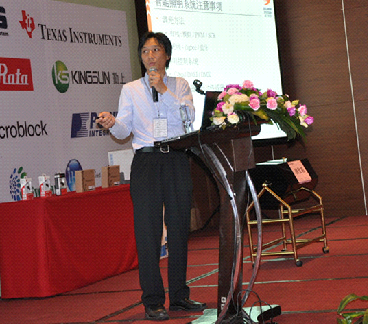 聚积科技照明产品总监俞仲威带来了《LED照明IC设计与电源模组应用趋势》。首先讲述LED照明发展的市场,再分析LED灯管的发展,讲解不同灯具对模组设计带来的冲击、LED应用趋势,最后抛出可控硅调光的议题,与现场听众进行了探讨。