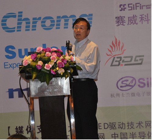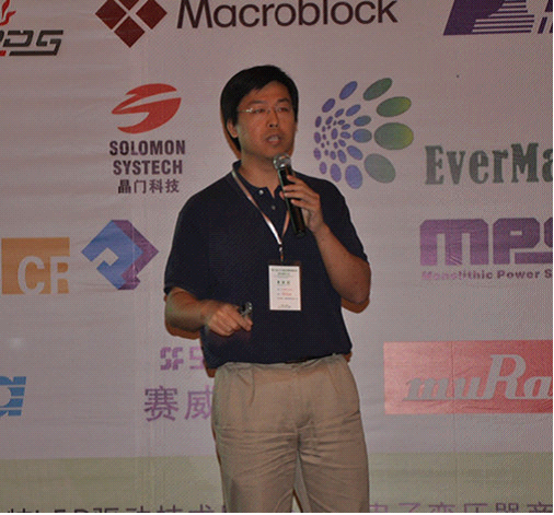 士兰微产品应用工程经理蔡拥军发表了《照明驱动器新产品及方案》的演讲,主要从DC-DC LED驱动器和AC-DC LED驱动控制器及未来产品的趋势作报告。为国内规模最大的集成电路芯片设计与制造一体(IDM)的企业之一,士兰微在今年新推出了几款LED驱动控制器产品。以非隔离AC-DC控制器为主,例如SD6900。隔离型AC-DC产品推出了SD6955。